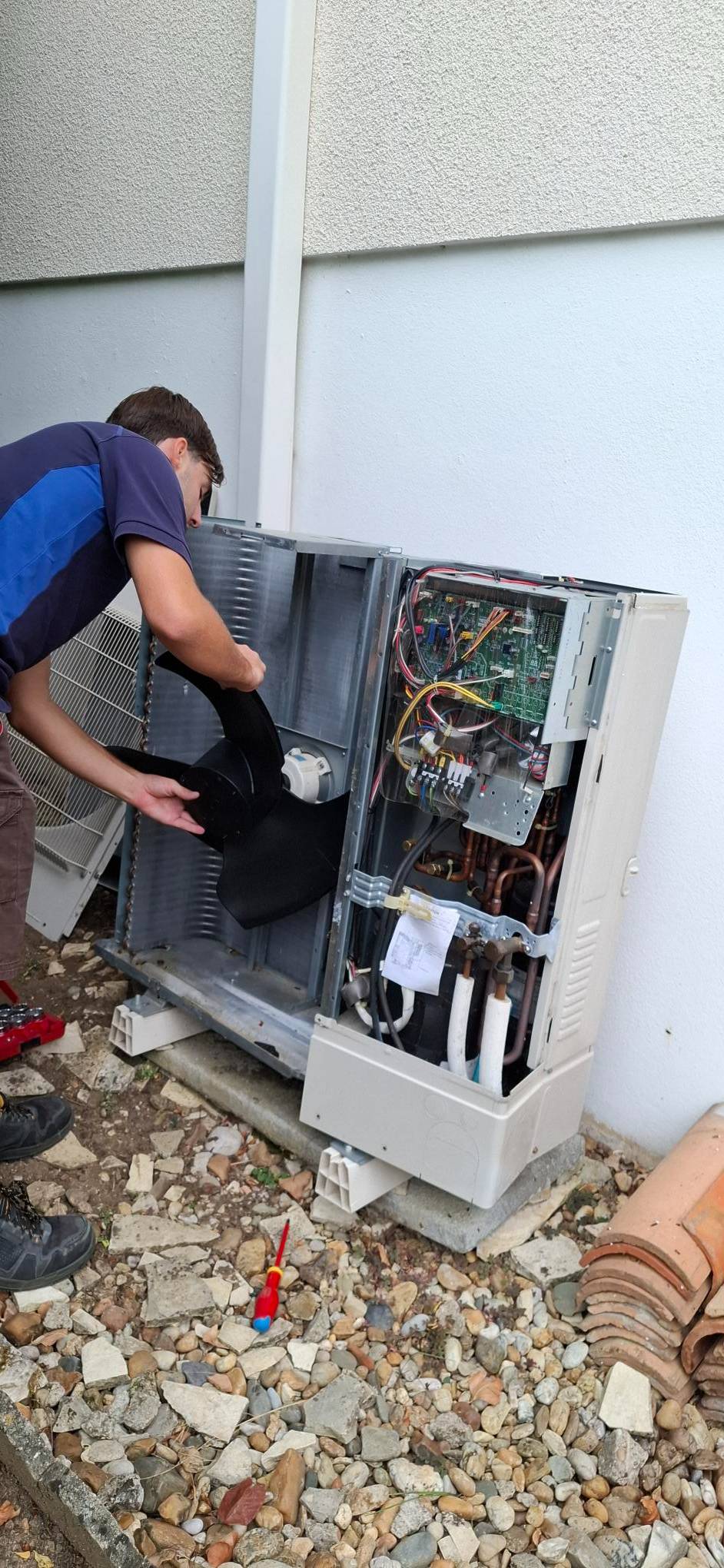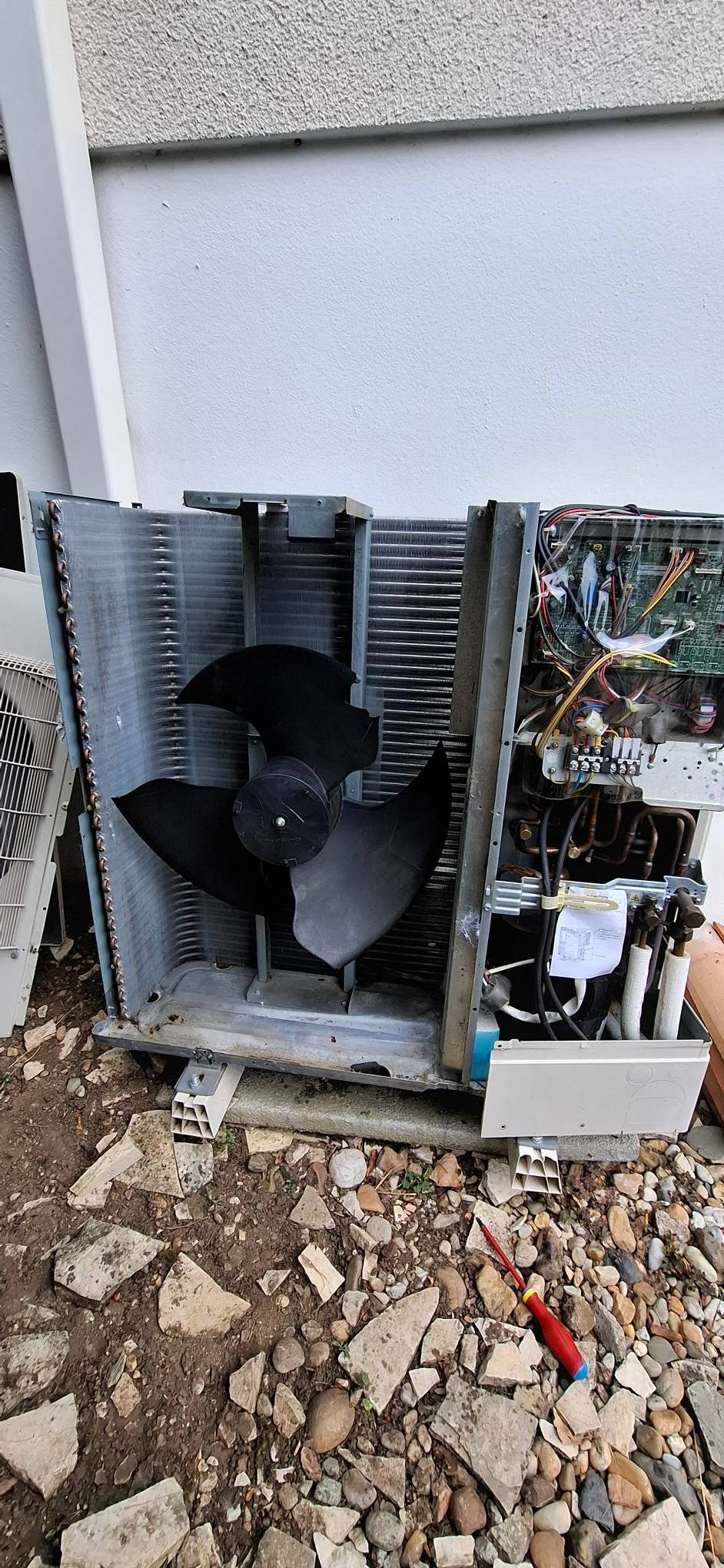 Lors de l'entretien annuel de sa climatisation chez madame R. à Artigues-Près-Bordeaux, nous avons constaté qu'une pâle de l'hélice de ventilation sur le groupe extérieur était cassée.