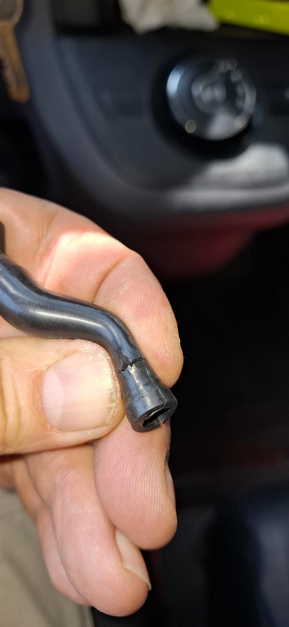 Très peu visible au premier coup d'œil, nous constatons que ce tuyau est fissuré, juste au dessus le la pompe de relevage en jaune.