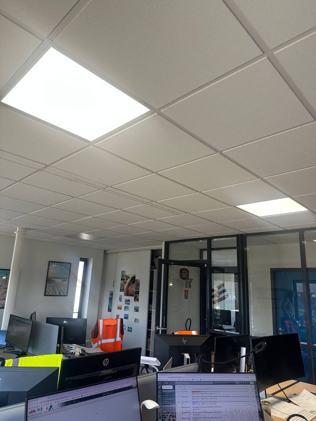 Sur la commune de Saint-Jean-d'Illac, à proximité de Mérignac et Martignas-sur-Jalle en Gironde (33), notre client une société de transport routier renommée, nous a demandé de revoir leur éclairage de bureau dont certaines dalles LED ne fonctionnaient plus correctement.