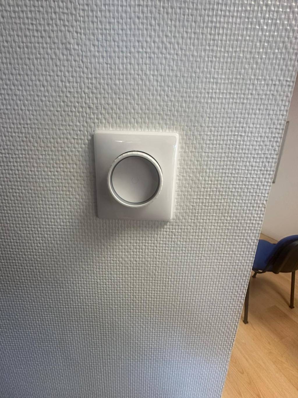 Nous avons remplacé les dalles existantes par des nouvelles dalle LED dimmable permettant ainsi, en complément d'un variateur rotatif de la marque Legrand, de pouvoir faire varier l'intensité de la lumière en fonction de leur besoin.