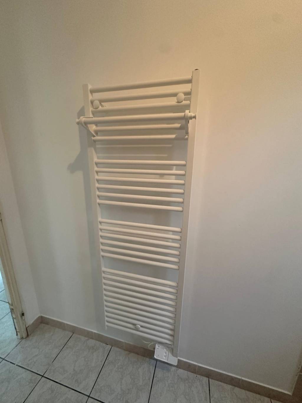 Dans la salle de bain un sèche serviette modèle 2012 vient compléter l'installation.