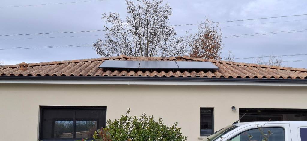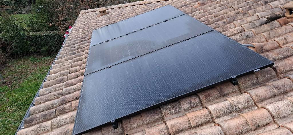 Pose de panneaux solaires pour une installation photovoltaïque de 3 kWc en autoconsommation, avec un onduleur FRONIUS GEN24 par un installateur agréé et certifié RGE.