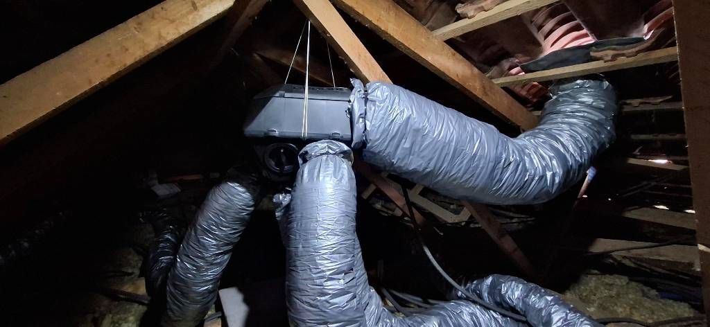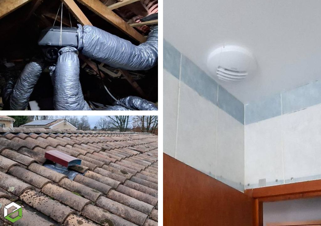 Lors de notre visite technique, nous avons relevé plusieurs non-conformités sur son installation, tels que la présence de gaines non isolées et nous avons constaté que les bouches d'aspiration de la cuisine, de la salle de bain et du cabinet de toilette ne fonctionnaient plus correctement.