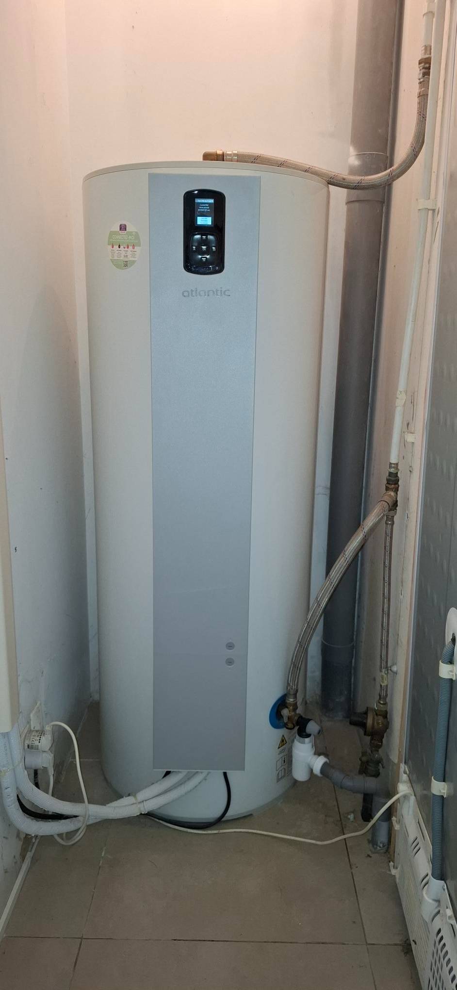 Contrôle et entretien d'un chauffe-eau thermodynamique modèle Calypso split 270L par un installateur agréé Atlantic